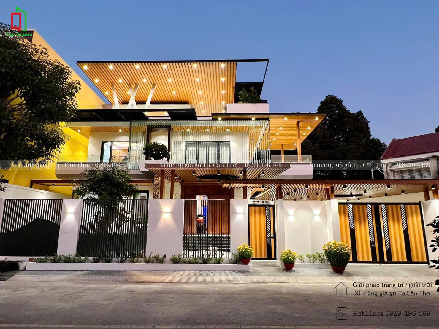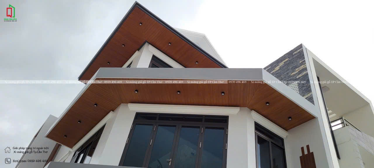 Hệ mái che canopy ốp xi măng giả gỗ tạo điểm nhấn sang trọng, hiện đại, vừa che nắng mưa hiệu quả vừa nâng tầm giá trị thẩm mỹ cho mặt tiền công trình. Bề mặt vân, xớ gỗ ấm áp kết hợp cùng khối mái gọn gàng giúp không gian trở nên nổi bật, chuyên nghiệp và thu hút hơn ngay từ cái nhìn đầu tiên.